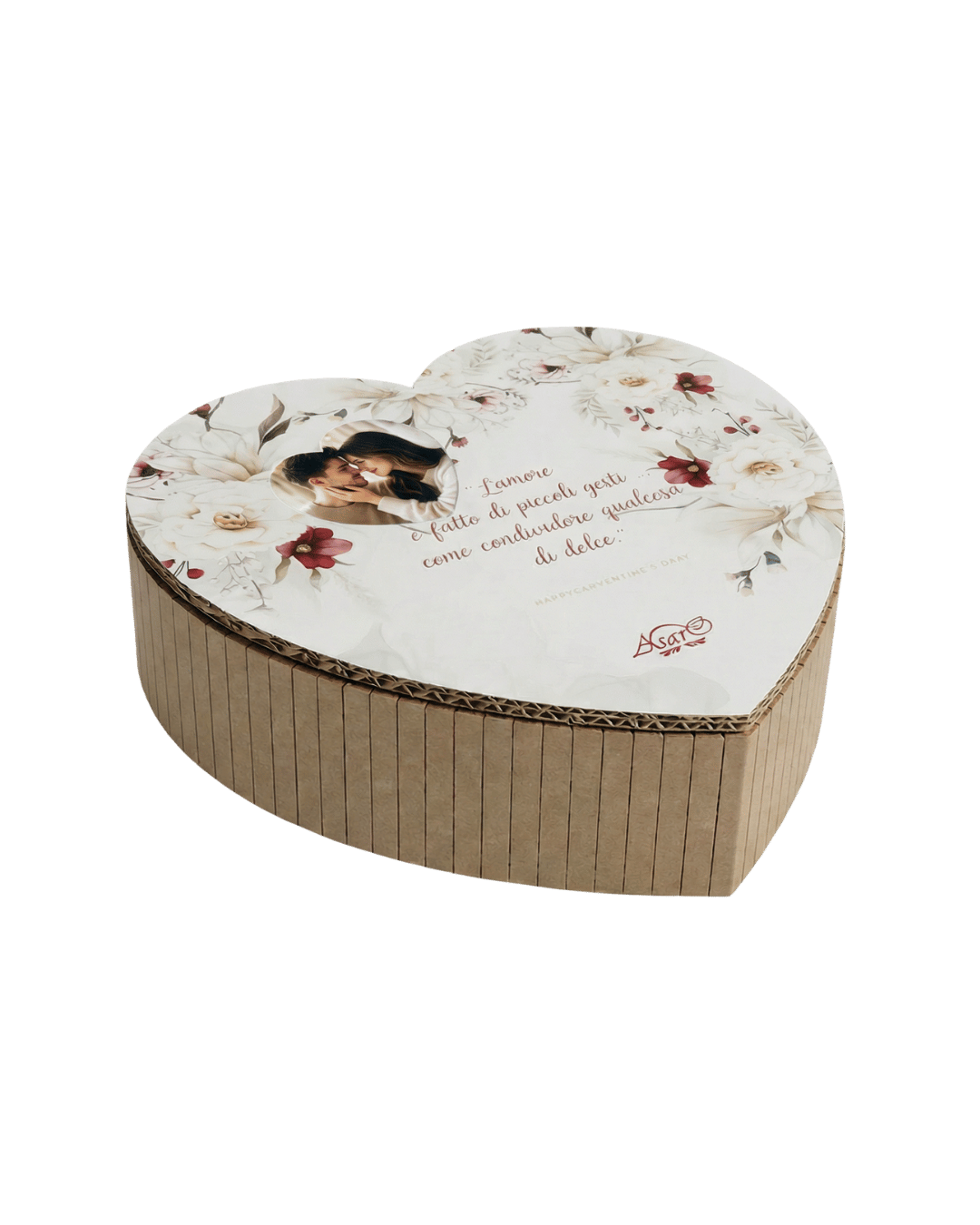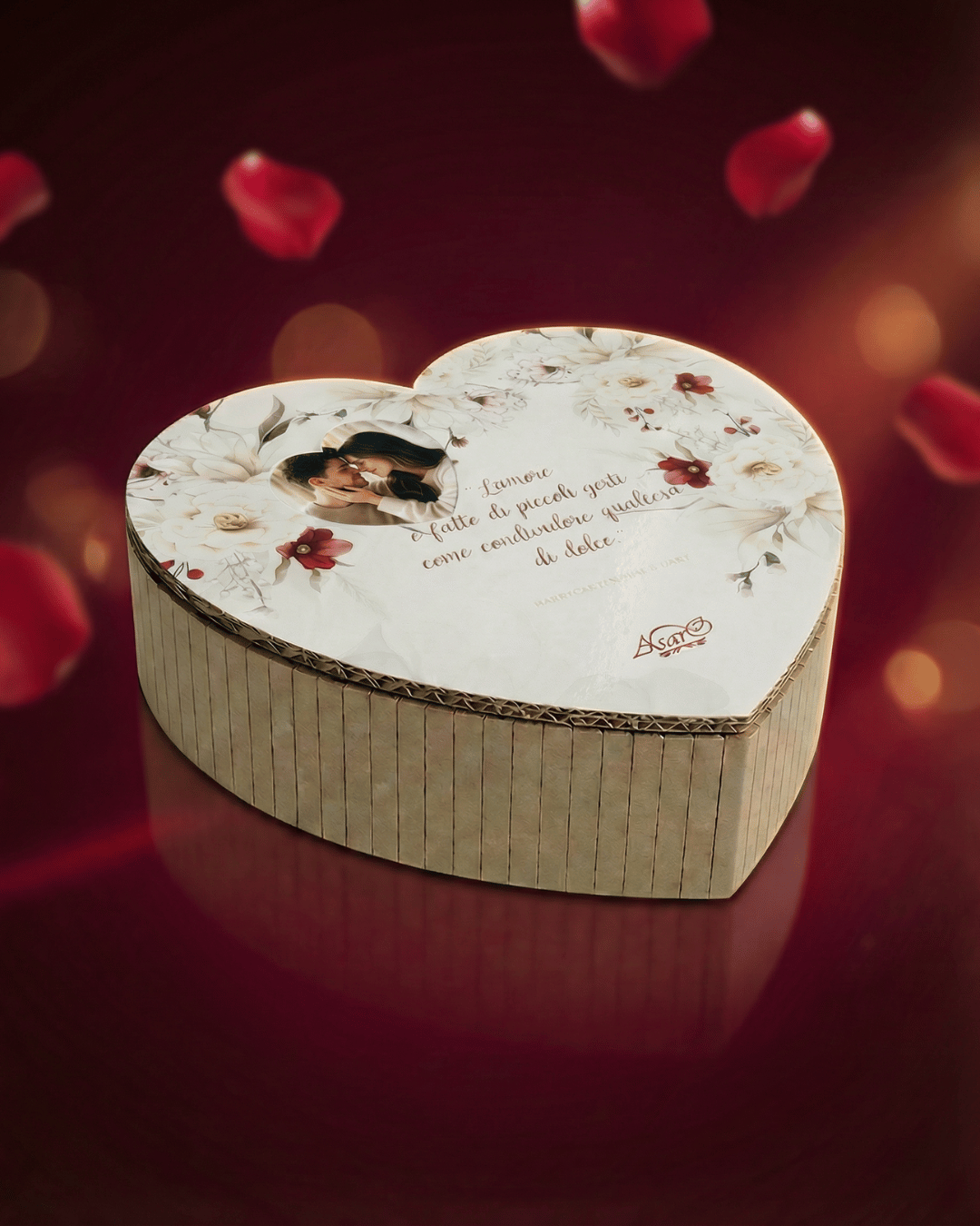 La tua foto viene stampata su un cuore per poi essere incollata sulla scatola, rendendo questo prodotto un vero regalo di San Valentino personalizzato, unico e carico di emozione.